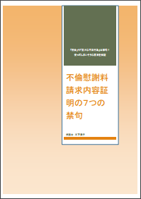 4つ目から7つ目の「禁句」は,アドバイスブック「不倫慰謝料請求内容証明の7つの禁句」(PDFファイル)でご覧いただけます。無料でダウンロードできます。「ほったらかし」にされにくく,不毛な議論を生まない慰謝料請求内容証明の作成に役立ててください。