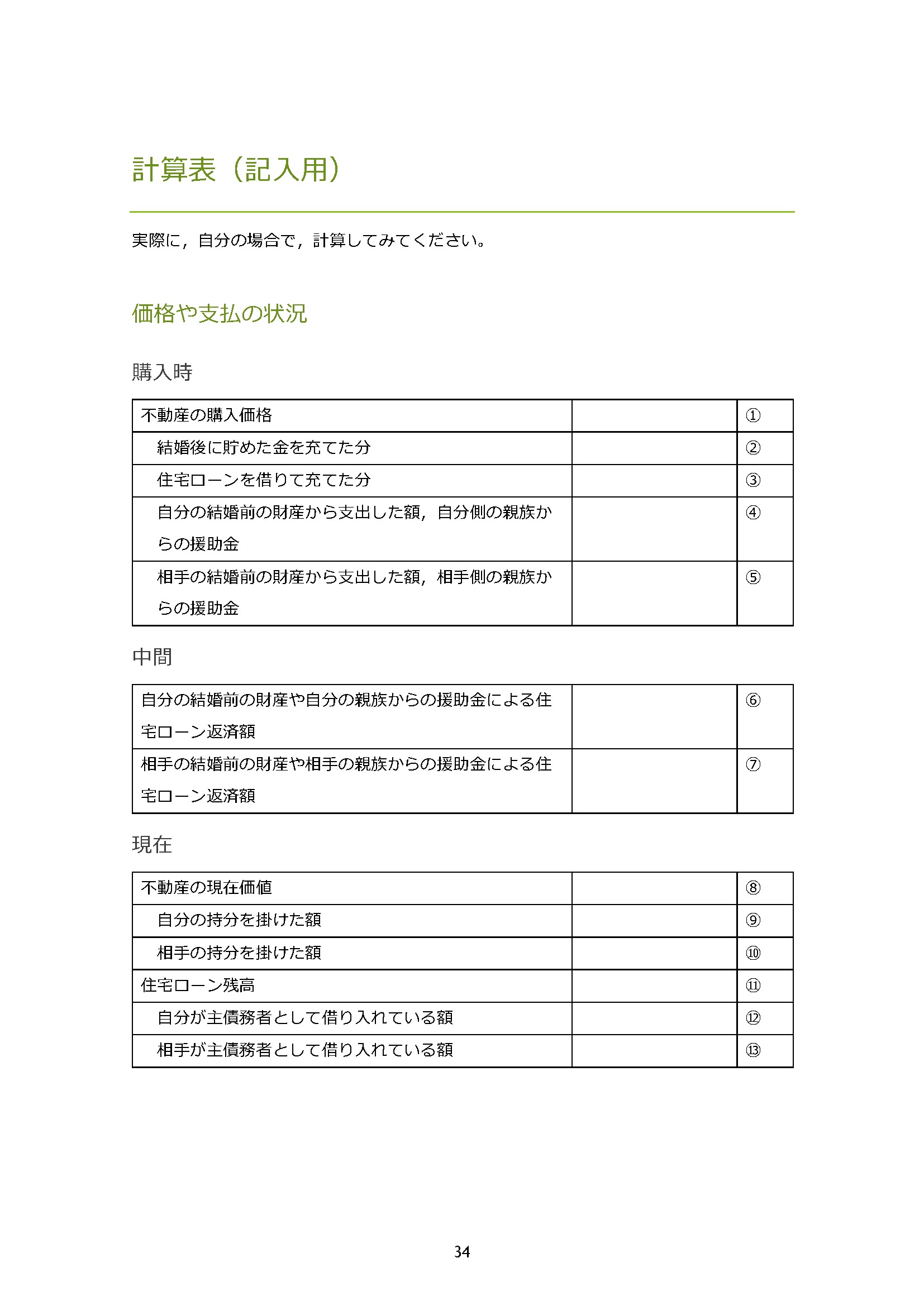 自分の場合にあてはめて計算できるよう,記入用計算表のページもあります。次のページは,計算表の1ページ目です。
