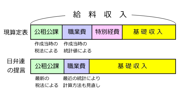 基礎収入は,総収入から「公租公課」(税金)や「経費」を差し引いたものですが,新算定方式・新算定表においては,裁判所の算定表・算定方式で「特別経費」としている住居関係費等を,生活費として取り扱い,総収入から控除する前記「経費」には含めないようにしました。