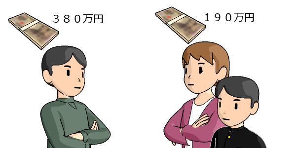 そして,裁判所の算定方式は,これを義務者の基礎収入380万円と権利者の基礎収入190万円で按分し,義務者の分担額すなわち養育費を120万円と算出します。